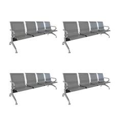 Kit 4 Cadeiras para Escritório Longarina 4 Lugares Dubai Cinza