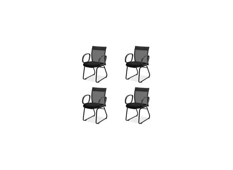 Kit 4 Cadeiras Para Recepção Base Trapézio Fixa Com Braço Corsa Tela Giobel Executiva