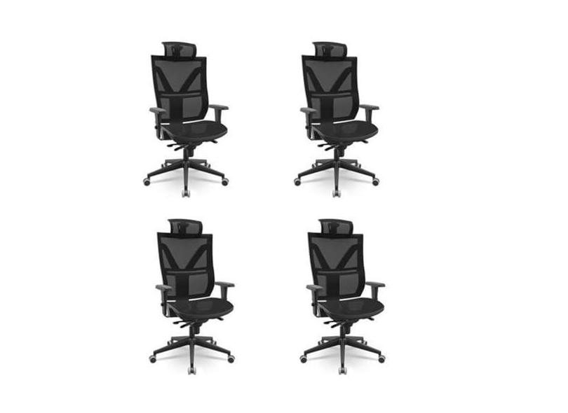 Kit 4 Cadeiras Presidente Darix com Mecanismo Slider Preto