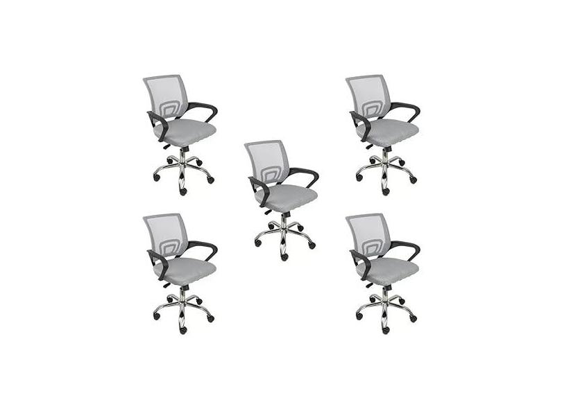 Kit 5 Cadeiras de Escritório Begonia Mesh Ergonômico Cinza