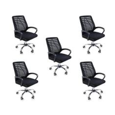 Kit 5 Cadeiras De Escritório Esteirinha Mesh Ergonômica Preto