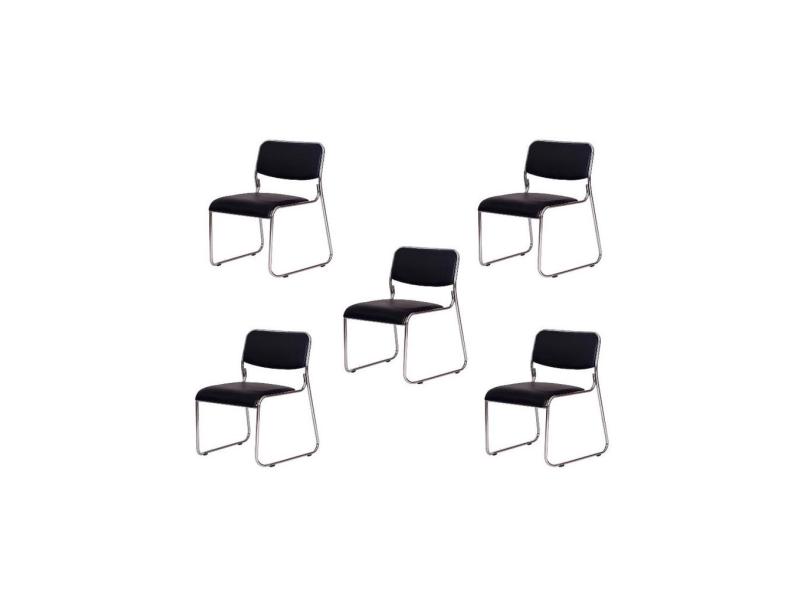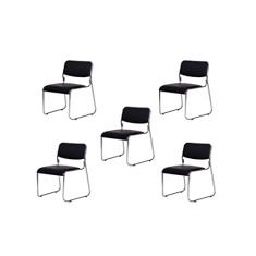 Kit 5 Cadeiras de escritório interlocutor fixa com base cromada W-21 Preta