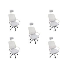 Kit 5 Cadeiras Escritório Diretor Mesh Encosto Cabeça Branco