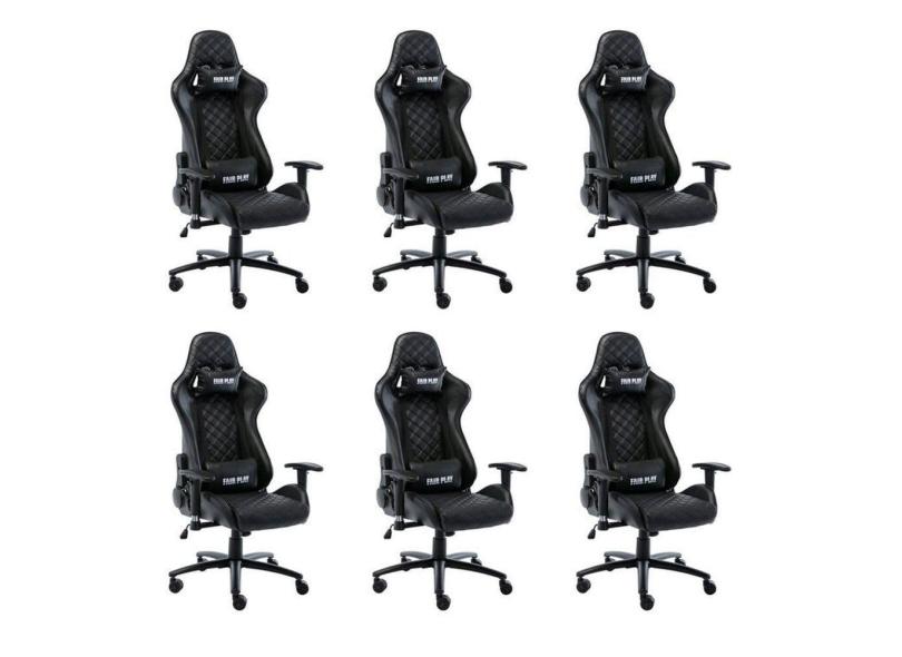 Kit 6 Cadeiras Gamer Giratória Fair Play Preto