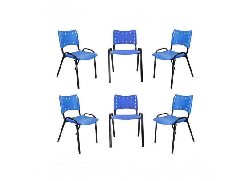 Kit 6 Cadeiras Iso Para Escola Escritório Comércio Azul Base Preta