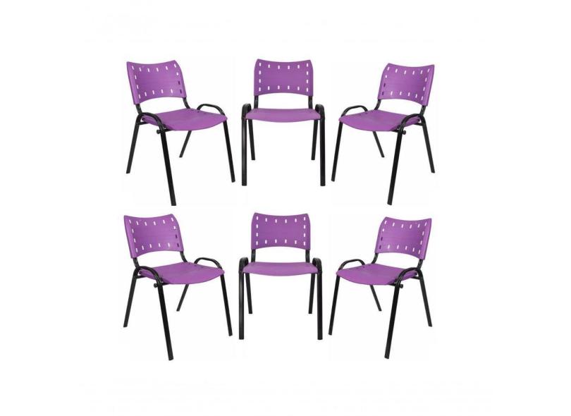 Kit 6 Cadeiras Iso Para Escola Escritório Comércio Roxo Base Preta