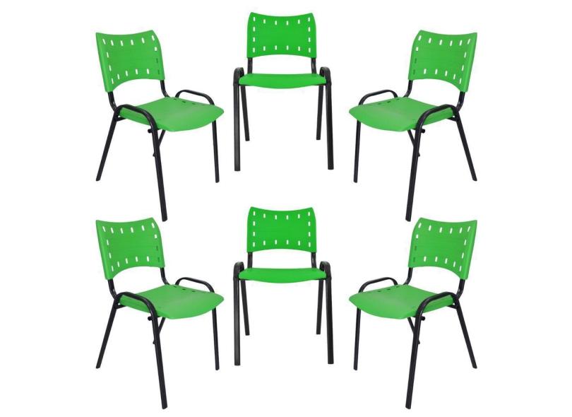 Kit 6 Cadeiras Iso Para Escola Escritório Comércio Verde Base Preta