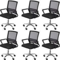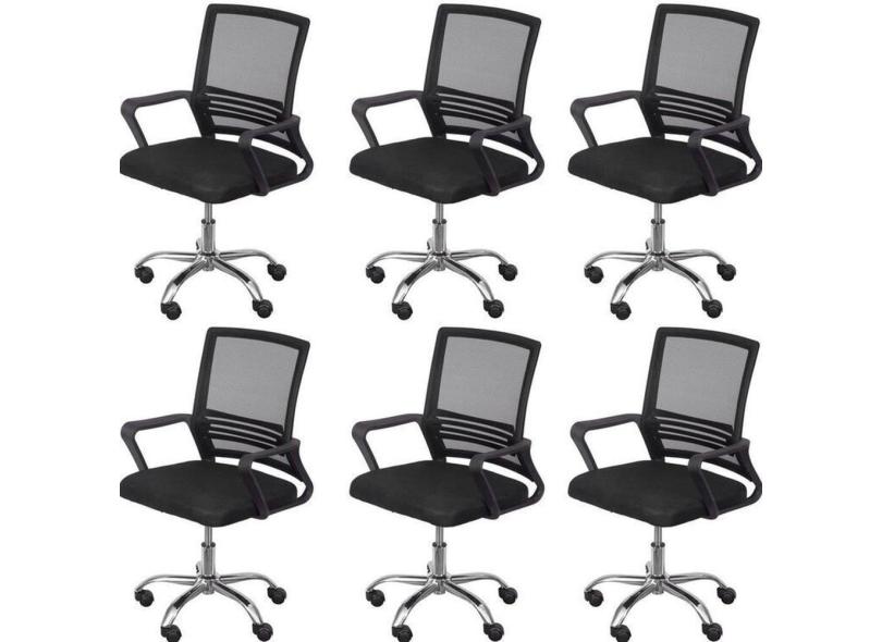 Kit 6 Cadeiras para Escritório Diretor Lyon Baixa em Tela Mesh Preto