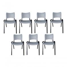 Kit 7 Cadeiras Iso Para Escola Escritório Comércio Cinza Base Preta