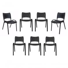 Kit 7 Cadeiras Iso Para Escola Escritório Comércio Preta Base Preta