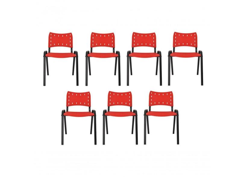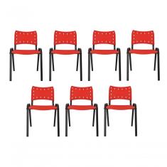 Kit 7 Cadeiras Iso Para Escola Escritório Comércio Vermelha Base Preta