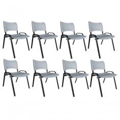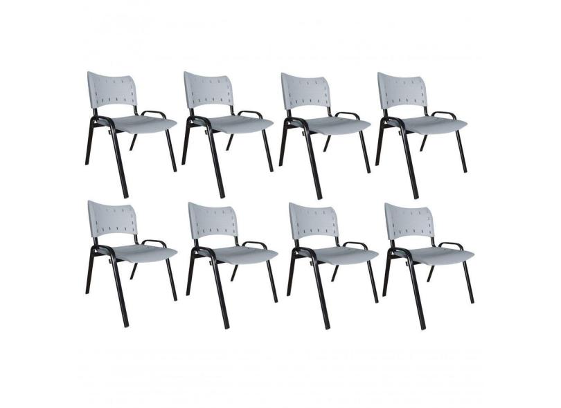 Kit 8 Cadeiras Iso Para Escola Escritório Comércio Cinza Base Preta