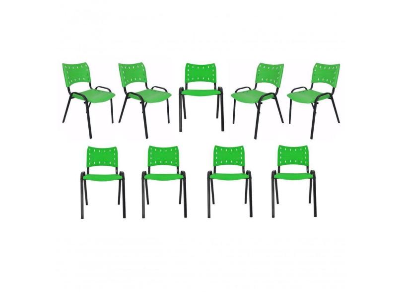 Kit 9 Cadeiras Iso Para Escola Escritório Comércio Verde Base Preta