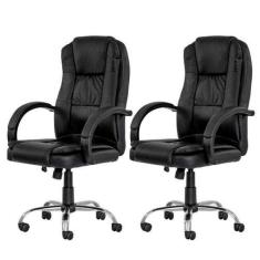 Kit com 2 Cadeiras Presidente Giratória Para Escritório em Couro pu Preta W-65