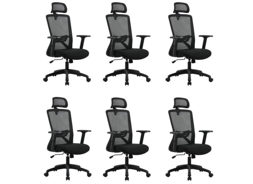 Kit com 6 Cadeira para Escritório Office Dallas Preto