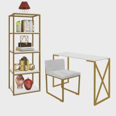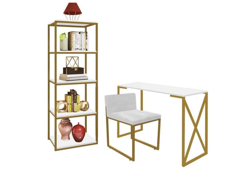 O menor preço encontrado no Brasil para Kit Escritório Bex 1 Cadeira Suede Branco com 1 Mesa e 1 Livreiro Ferro Dourado MDF Branco - Ahazzo Móveis atualmente é R$ 1.229,90.