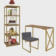 O menor preço encontrado no Brasil para Kit Escritório Bex 1 Cadeira Suede Cinza com 1 Mesa e 1 Livreiro Ferro Dourado MDF Caramelo - Ahazzo Móveis atualmente é R$ 1.409,90.