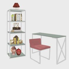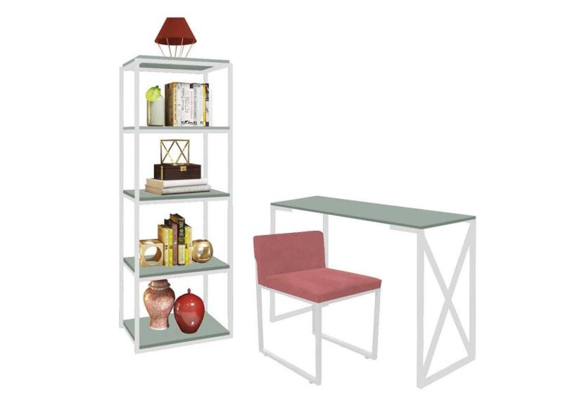 O menor preço encontrado no Brasil para Kit Escritório Bex 1 Cadeira Suede Rose com 1 Mesa e 1 Livreiro Ferro Branco MDF Verde Oliva - Ahazzo Móveis atualmente é R$ 1.269,90.