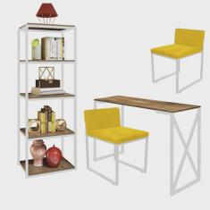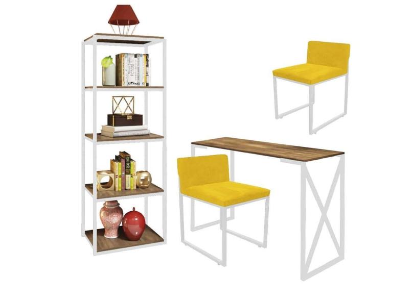 O menor preço encontrado no Brasil para Kit Escritório Bex 2 Cadeiras Corino Amarelo com 1 Mesa e 1 Livreiro Ferro Branco MDF Freijó - Ahazzo Móveis atualmente é R$ 1.749,90.