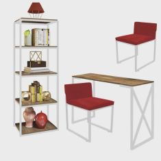 O menor preço encontrado no Brasil para Kit Escritório Bex 2 Cadeiras Sintético Vermelho com 1 Mesa e 1 Livreiro Ferro Branco MDF Freijó - Ahazzo Móveis atualmente é R$ 1.749,90.