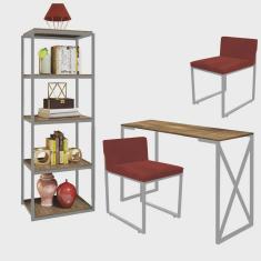 O menor preço encontrado no Brasil para Kit Escritório Bex 2 Cadeiras Sintético Vermelho com 1 Mesa e 1 Livreiro Ferro Cinza MDF Carvalho - Ahazzo Móveis atualmente é R$ 1.749,90.