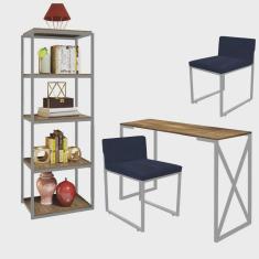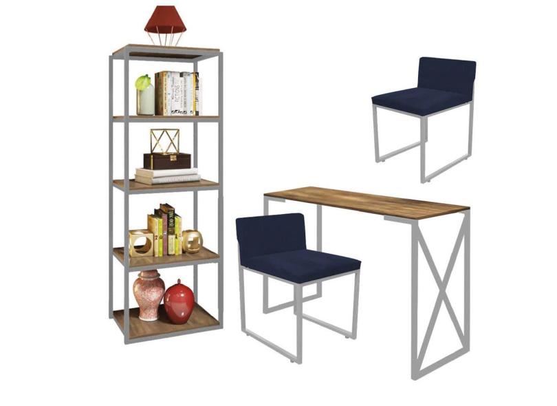 O menor preço encontrado no Brasil para Kit Escritório Bex 2 Cadeiras Suede Azul Marinho com 1 Mesa e 1 Livreiro Ferro Cinza MDF Castanho - Ahazzo Móveis atualmente é R$ 1.749,90.