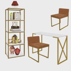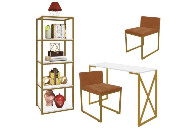 O menor preço encontrado no Brasil para Kit Escritório Bex 2 Cadeiras Suede Terracota com 1 Mesa e 1 Livreiro Ferro Dourado MDF Branco - Ahazzo Móveis atualmente é R$ 1.569,90.