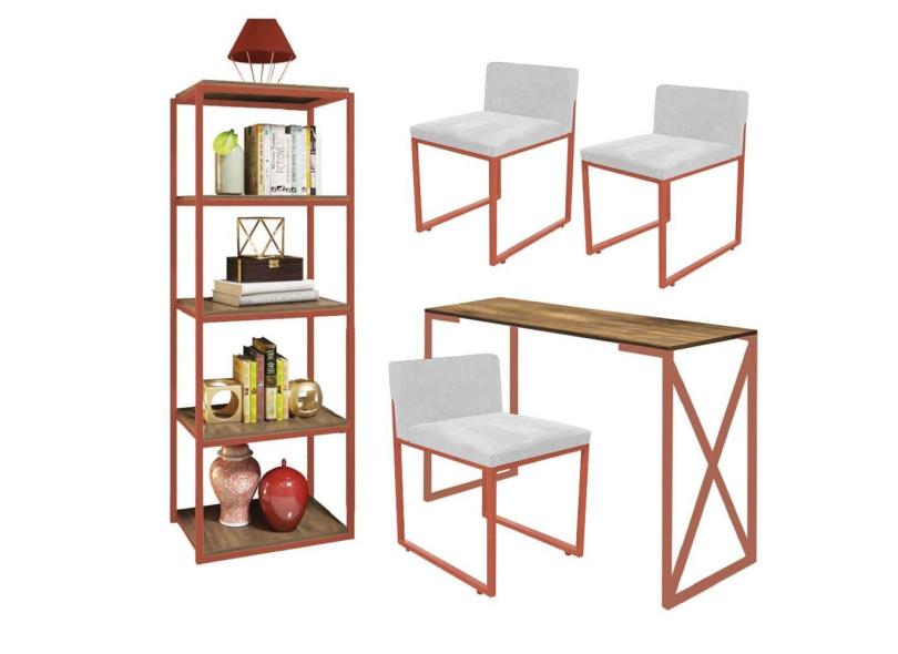 O menor preço encontrado no Brasil para Kit Escritório Bex 3 Cadeiras Corino Branco com 1 Mesa e 1 Livreiro Ferro Bronze MDF Caramelo - Ahazzo Móveis atualmente é R$ 2.089,90.