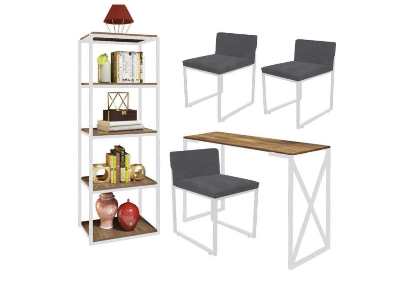 O menor preço encontrado no Brasil para Kit Escritório Bex 3 Cadeiras Sintético Cinza com 1 Mesa e 1 Livreiro Ferro Branco MDF Carvalho - Ahazzo Móveis atualmente é R$ 2.089,90.