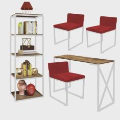 O menor preço encontrado no Brasil para Kit Escritório Bex 3 Cadeiras Sintético Vermelho com 1 Mesa e 1 Livreiro Ferro Branco MDF Imbuia - Ahazzo Móveis atualmente é R$ 2.089,90.