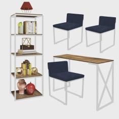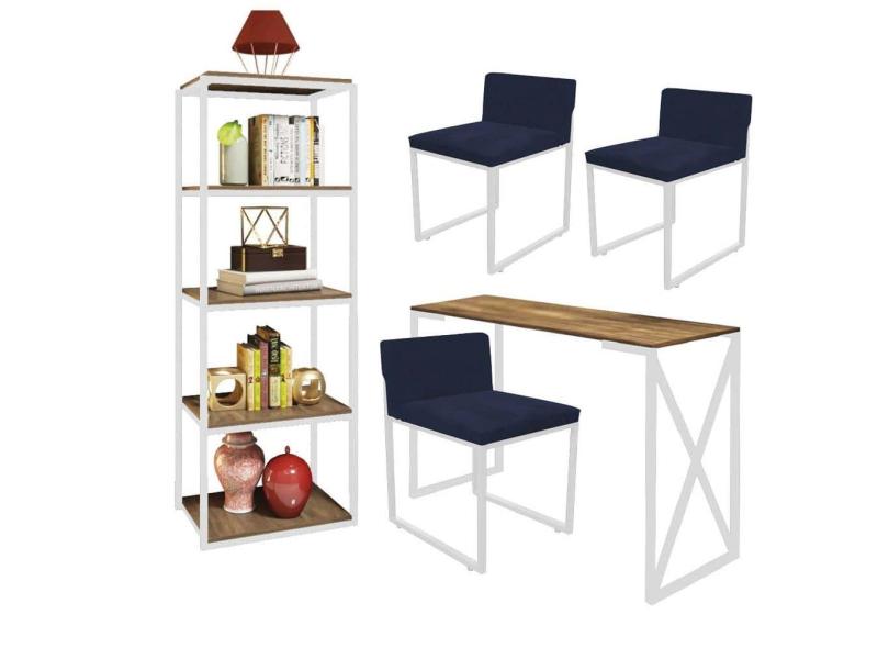 O menor preço encontrado no Brasil para Kit Escritório Bex 3 Cadeiras Suede Azul Marinho com 1 Mesa e 1 Livreiro Ferro Branco MDF Carvalho - Ahazzo Móveis atualmente é R$ 2.089,90.