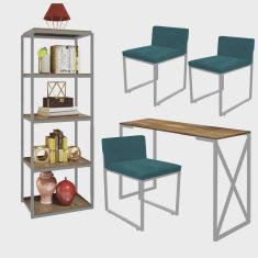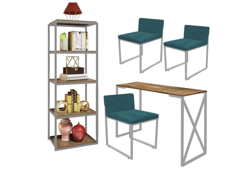 O menor preço encontrado no Brasil para Kit Escritório Bex 3 Cadeiras Suede Azul Turquesa com 1 Mesa e 1 Livreiro Ferro Cinza MDF Caramelo - Ahazzo Móveis atualmente é R$ 2.089,90.