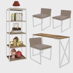 O menor preço encontrado no Brasil para Kit Escritório Bex 3 Cadeiras Suede Bege com 1 Mesa e 1 Livreiro Ferro Branco MDF Carvalho - Ahazzo Móveis atualmente é R$ 2.089,90.