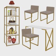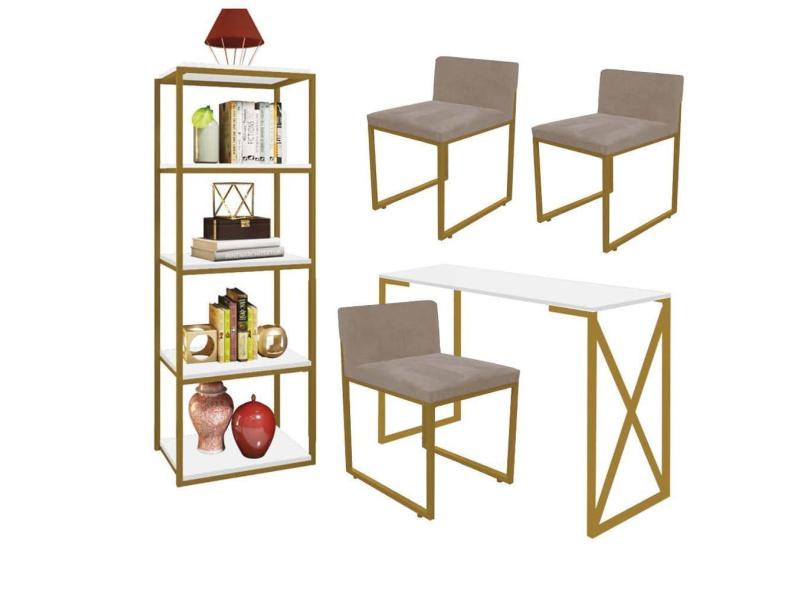 O menor preço encontrado no Brasil para Kit Escritório Bex 3 Cadeiras Suede Bege com 1 Mesa e 1 Livreiro Ferro Dourado MDF Branco - Ahazzo Móveis atualmente é R$ 1.909,90.