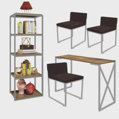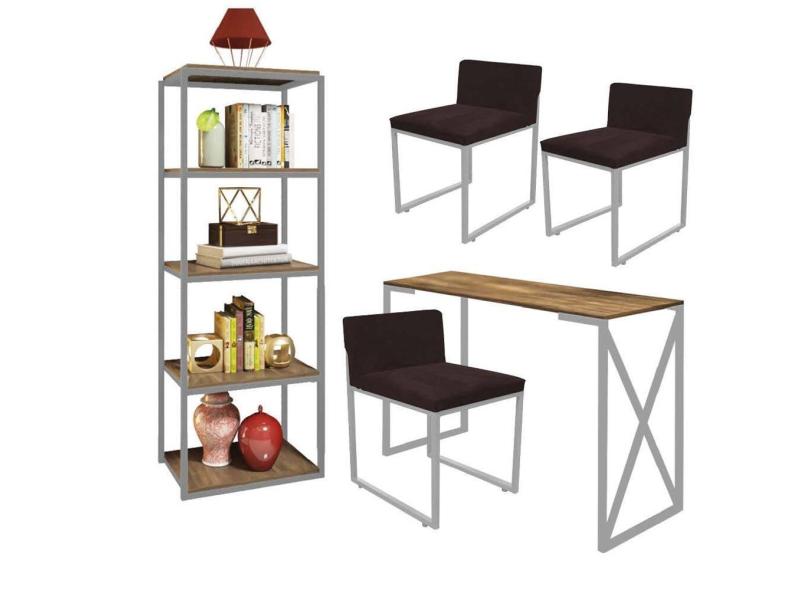 O menor preço encontrado no Brasil para Kit Escritório Bex 3 Cadeiras Suede Marrom com 1 Mesa e 1 Livreiro Ferro Cinza MDF Carvalho - Ahazzo Móveis atualmente é R$ 2.089,90.