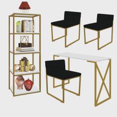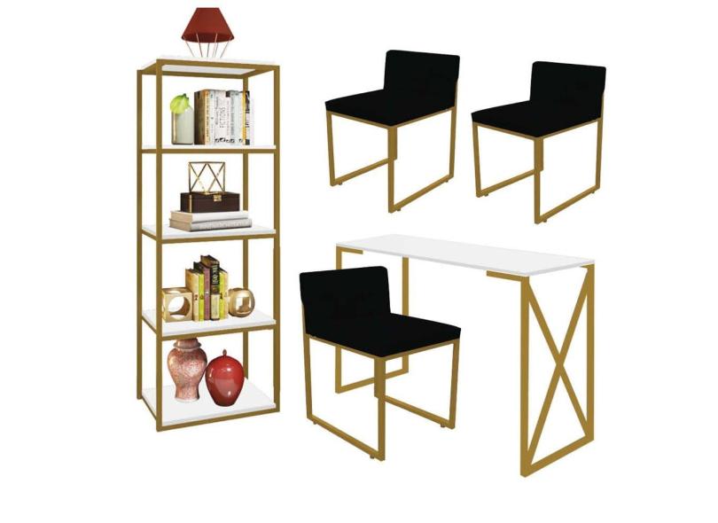 O menor preço encontrado no Brasil para Kit Escritório Bex 3 Cadeiras Suede Preto com 1 Mesa e 1 Livreiro Ferro Dourado MDF Branco - Ahazzo Móveis atualmente é R$ 1.909,90.