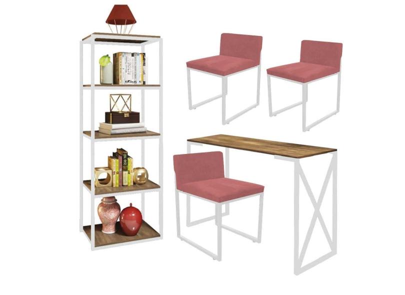 O menor preço encontrado no Brasil para Kit Escritório Bex 3 Cadeiras Suede Rose com 1 Mesa e 1 Livreiro Ferro Branco MDF Caramelo - Ahazzo Móveis atualmente é R$ 2.089,90.
