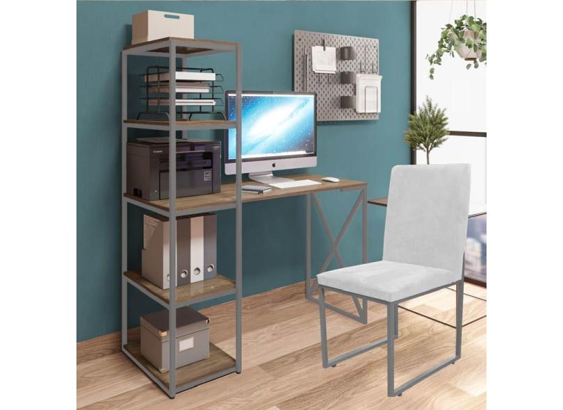 O menor preço encontrado no Brasil para Kit Escritório Mesa Max BeX 5 Prateleiras e Cadeira Stan Cinza Tampo Rústico Corino Branco - Ahz Móveis atualmente é R$ 1.079,90.