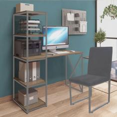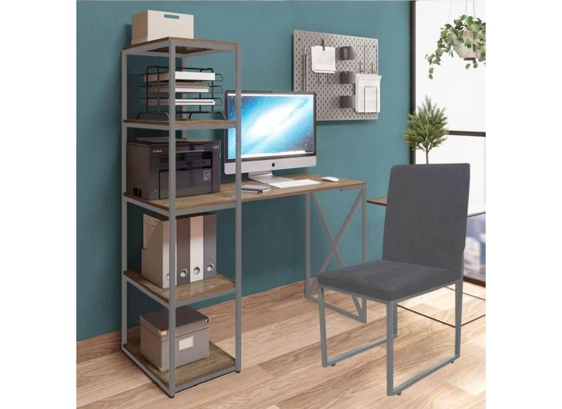 O menor preço encontrado no Brasil para Kit Escritório Mesa Max BeX 5 Prateleiras e Cadeira Stan Prata Tampo Rústico Sintético Cinza - Ahz Móveis atualmente é R$ 1.079,90.