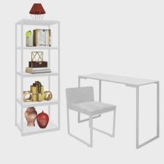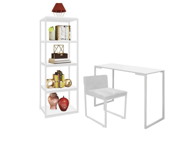 O menor preço encontrado no Brasil para Kit Escritório Ravi 1 Cadeira Suede Branco com 1 Mesa e 1 Livreiro Ferro Branco MDF Branco - Ahazzo Móveis atualmente é R$ 1.189,90.