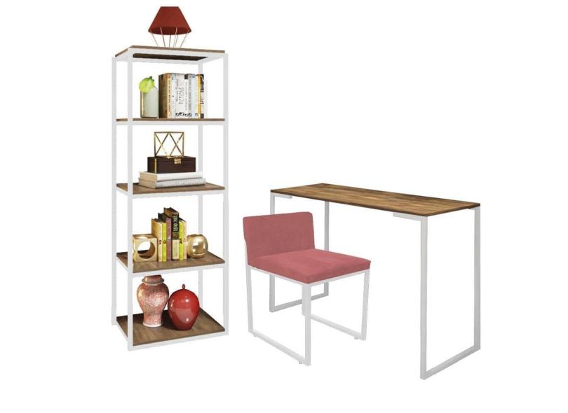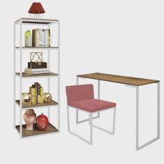O menor preço encontrado no Brasil para Kit Escritório Ravi 1 Cadeira Suede Rose com 1 Mesa e 1 Livreiro Ferro Branco MDF Carvalho - Ahazzo Móveis atualmente é R$ 1.369,90.