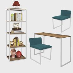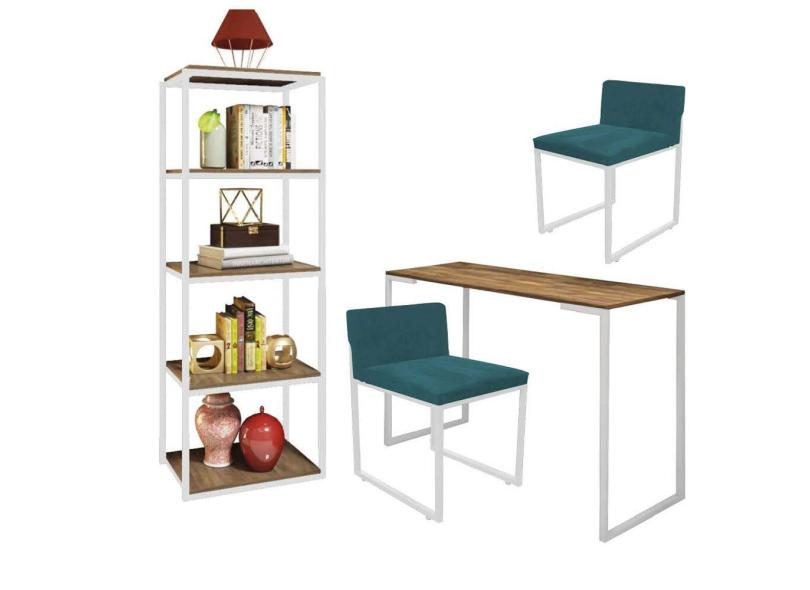 O menor preço encontrado no Brasil para Kit Escritório Ravi 2 Cadeiras Suede Azul Turquesa com 1 Mesa e 1 Livreiro Ferro Branco MDF Carvalho - Ahazzo Móveis atualmente é R$ 1.709,90.