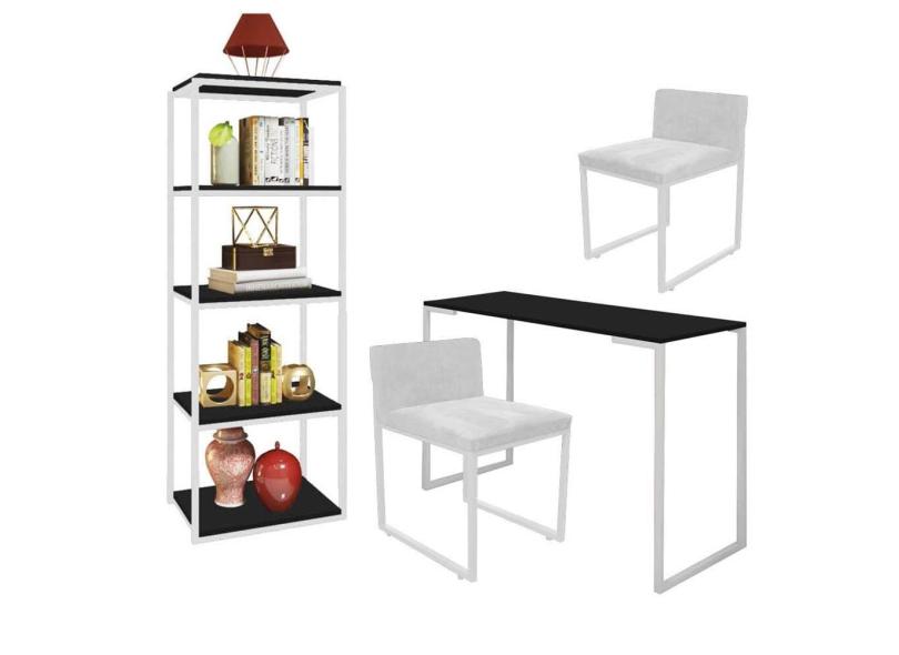 O menor preço encontrado no Brasil para Kit Escritório Ravi 2 Cadeiras Suede Branco com 1 Mesa e 1 Livreiro Ferro Branco MDF Preto - Ahazzo Móveis atualmente é R$ 1.529,90.
