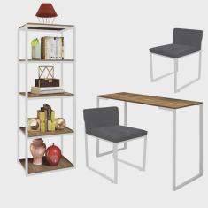 O menor preço encontrado no Brasil para Kit Escritório Ravi 2 Cadeiras Suede Branco com 1 Mesa e 1 Livreiro Ferro Cinza MDF Carvalho - Ahazzo Móveis atualmente é R$ 1.709,90.
