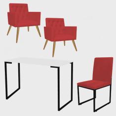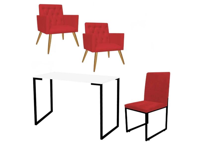 O menor preço encontrado no Brasil para Kit Escritório Stan 2 Poltronas Capitonê com Cadeira e Mesa Industrial Branco Preto Tecido Sintético Vermelho - Ahz Móveis atualmente é R$ 1.599,90.