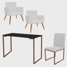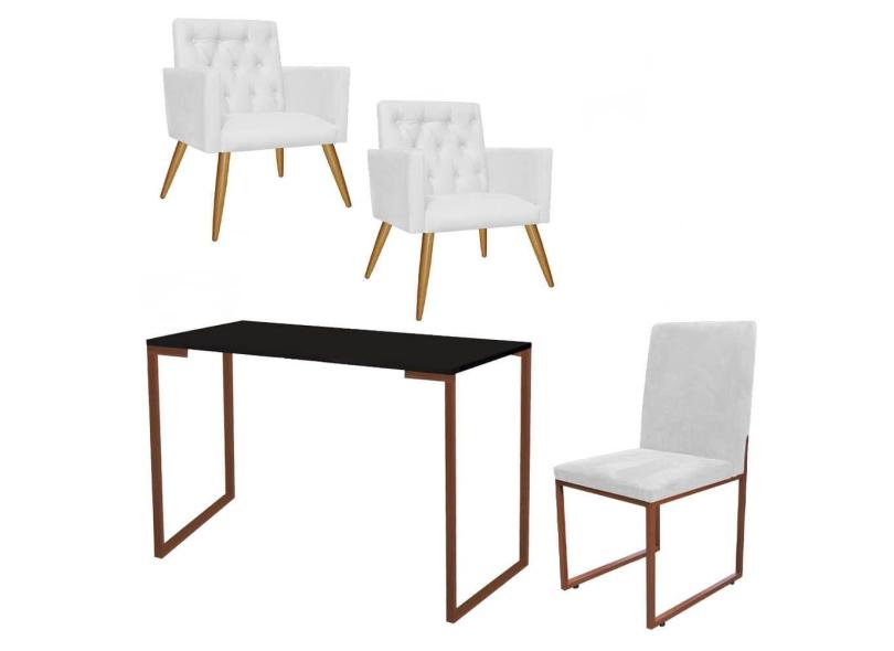 O menor preço encontrado no Brasil para Kit Escritório Stan 2 Poltronas Capitonê com Cadeira e Mesa Industrial Preto Bronze Tecido Sintético Branco - Ahz Móveis atualmente é R$ 1.599,90.