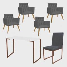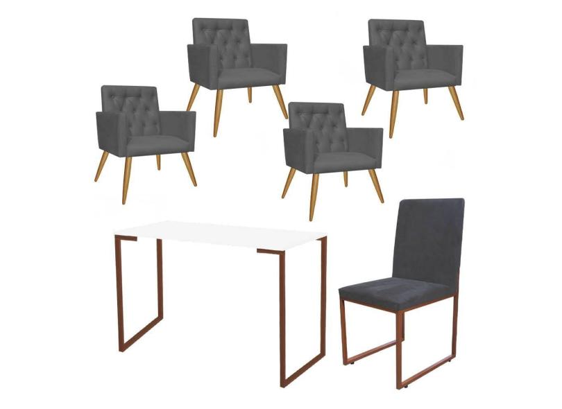 O menor preço encontrado no Brasil para Kit Escritório Stan 4 Poltronas Capitonê com Cadeira e Mesa Industrial Branco Bronze Corino Cinza - Ahz Móveis atualmente é R$ 2.599,90.
