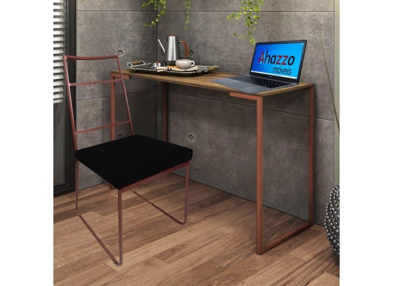 Kit Escritório Stark Cadeira e Mesa Industrial Ferro Bronze Tampo MDF Carvalho Corino Preto - Ahz Móveis