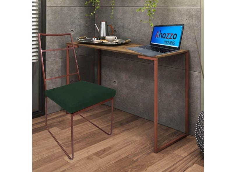 Kit Escritório Stark Cadeira e Mesa Industrial Ferro Bronze Tampo MDF Castanho Suede Verde Escuro - Ahz Móveis