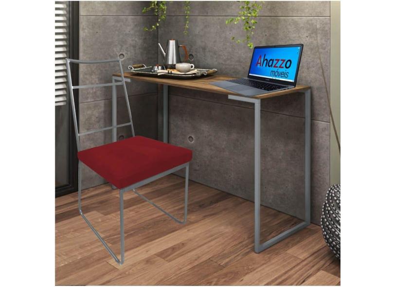Kit Escritório Stark Cadeira e Mesa Industrial Ferro Prata Tampo MDF Carvalho Corino Vermelho - Ahz Móveis